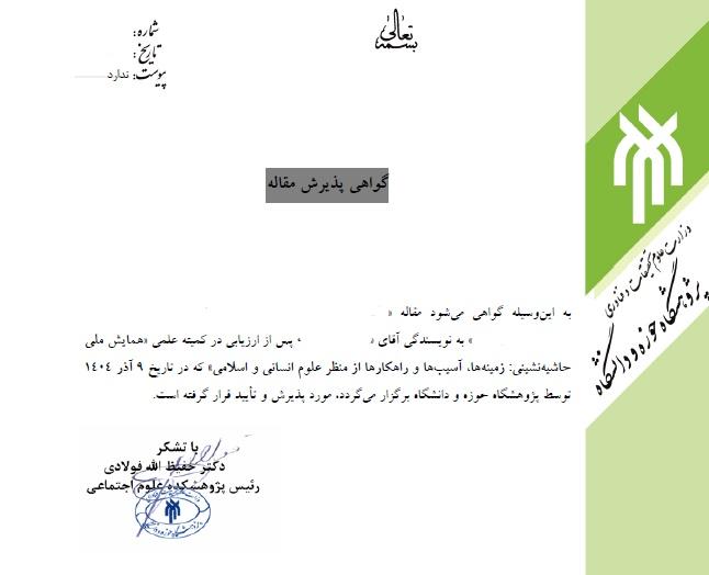 صدور گواهی پذیرش مقالات همایش ملی حاشیهنشینی